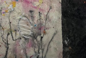 However, for this exhibition he puts aside his own imagery to build a space where the gestural traces and thought-worlds of his peers intersect.