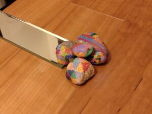 stones stacked along the riverbank, a makeshift rest spot assembled by a fisherman, a piece of cardboard trembling in the wind.