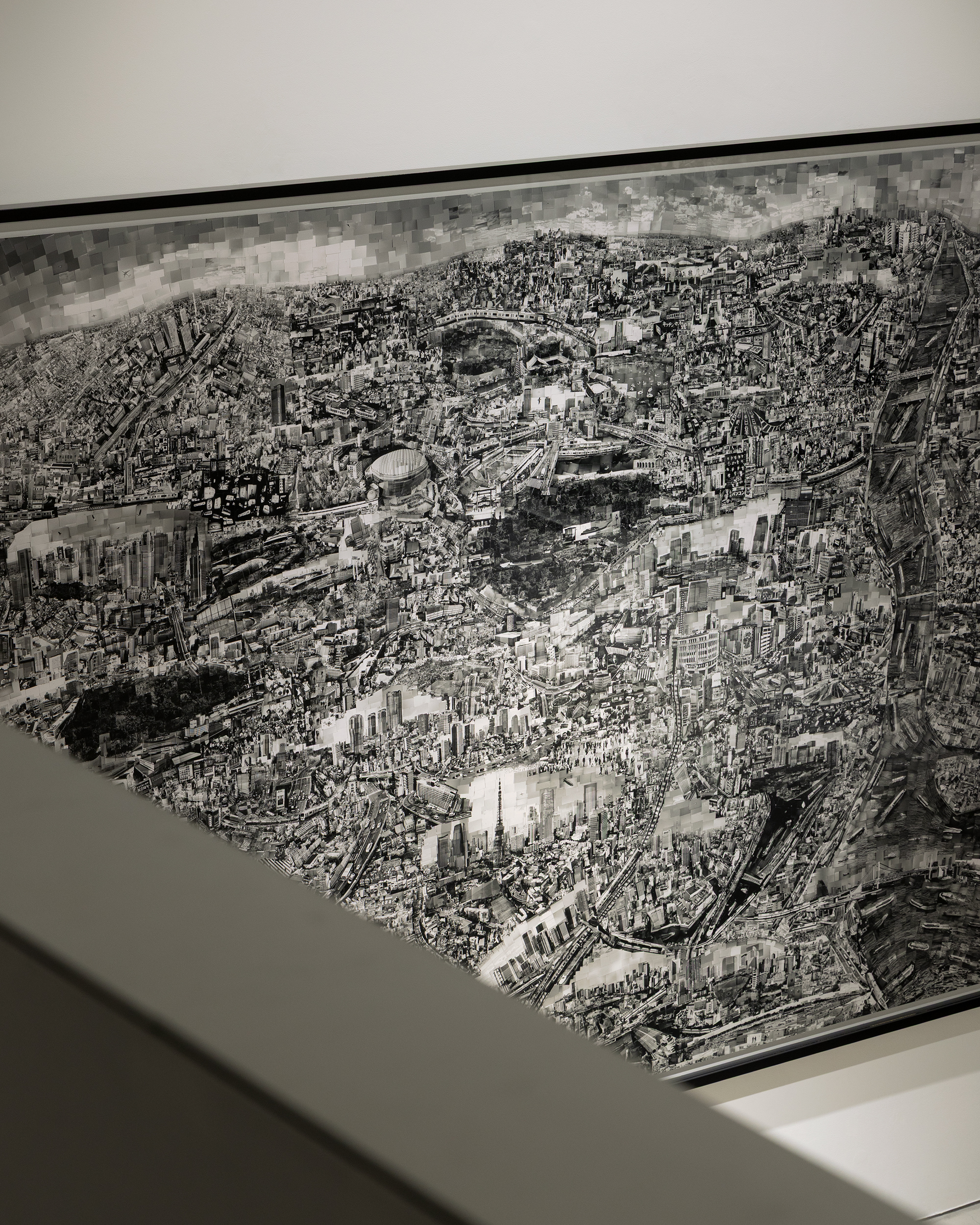 The methods developed in the Diorama Map series are grounded not merely in photographic expression, but in a physical engagement with movement and memory. The act of touching, cutting, and assembling tens of thousands of photographs—fragments of memory—functions as a process through which memories of travel are reawakened and anchored in the present. For Nishino, this process can be understood as a continuation of the journey itself. The landscapes that emerge as single maps are accumulations of movement and time, revealing layers of shifting consciousness, as if the city itself were breathing.