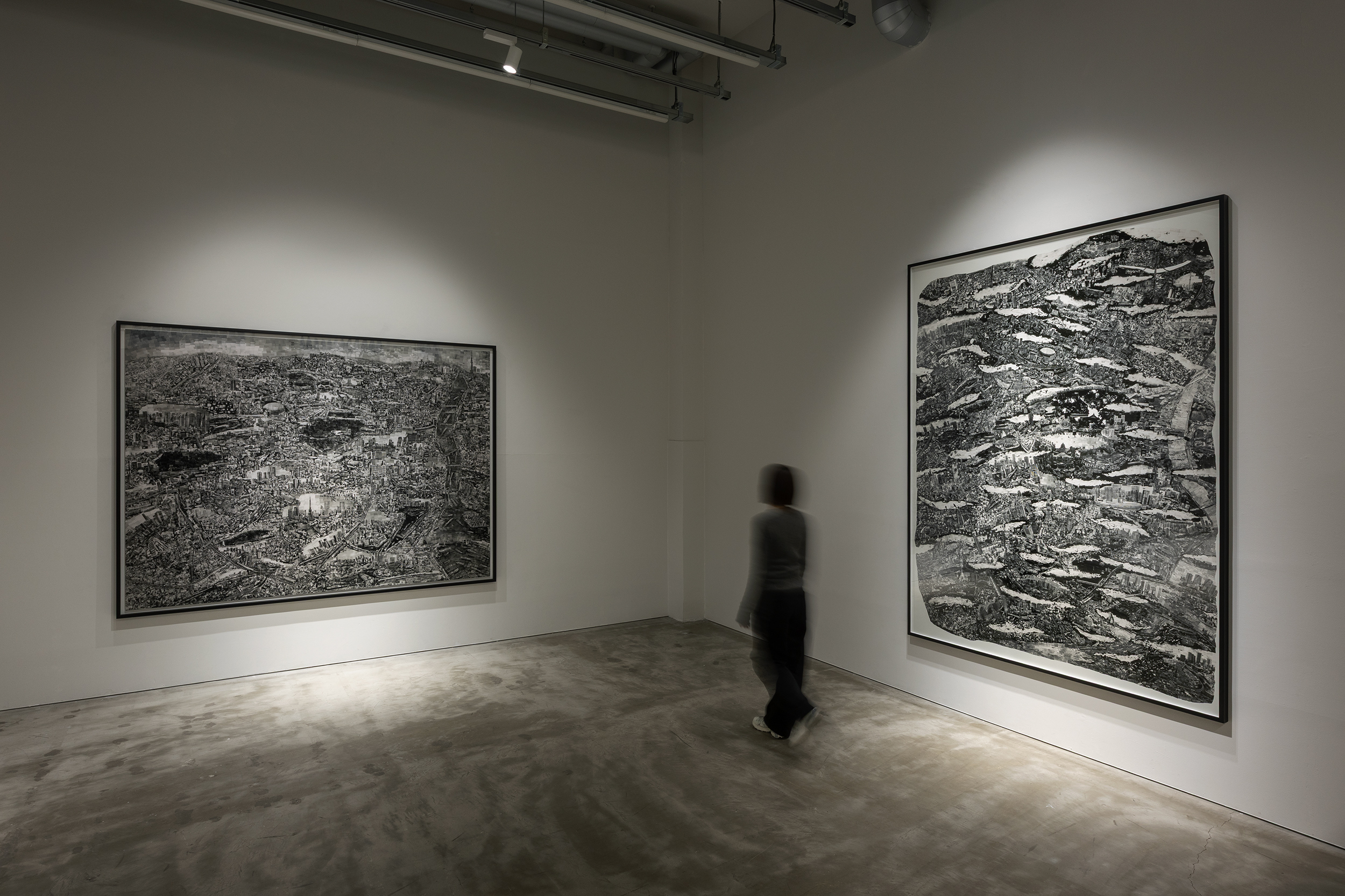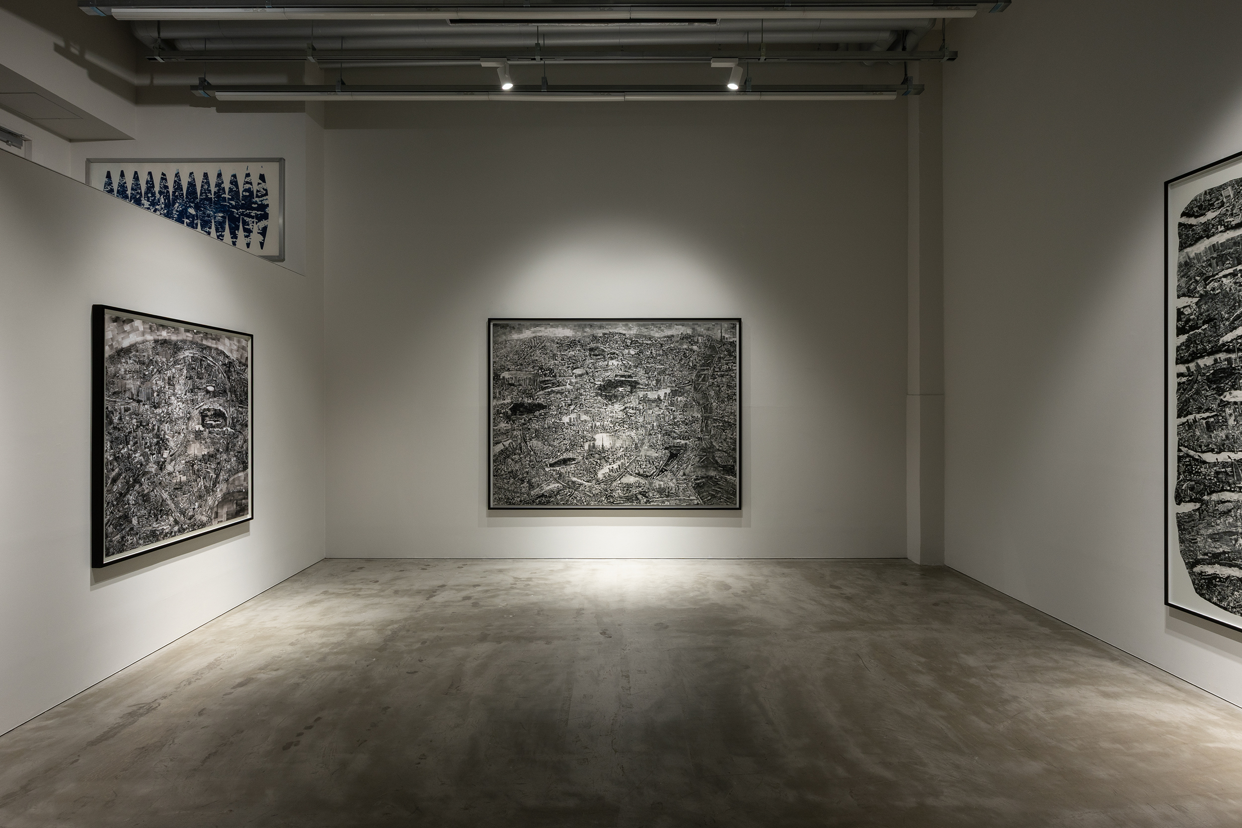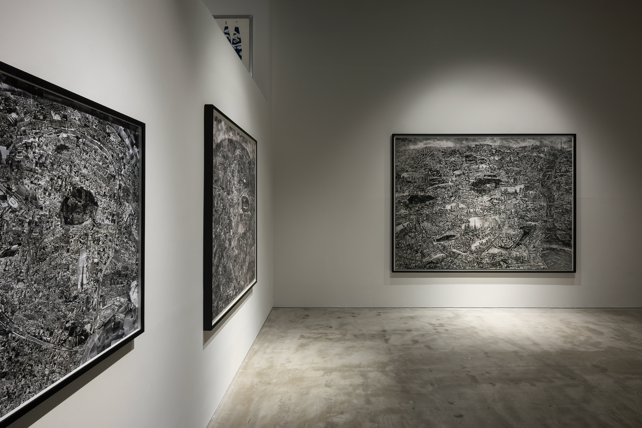 This exhibition brings together the Diorama Map series created at ten-year intervals—Tokyo 2004, Tokyo 2014, and Tokyo 2024—alongside Tokyo 2003, an early, previously unreleased work. Tracing nearly two decades of artistic development, the exhibition follows the deepening of Nishino’s perspective—from the aerial, bird’s-eye view of early works such as Aerial Stroll, to the viewpoint of everyday life, and finally to the painterly perspective of “beyond the clouds” in his most recent works. These overlapping layers of multiple viewpoints render the city as a single, immense living entity, while also bringing forth Nishino’s own self-portrait, glimpsed through the city.