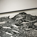 《Diorama Map》シリーズにおいて展開されてきたこうした手法の背景には、写真を用いた表現を超えて、移動と記憶に対する身体的な関わりがあります。数万枚におよぶ写真という「記憶の断片」に手で触れ、切り取り、貼り合わせていく行為は、旅の記憶を呼び起こし、現在へと定着させていくためのプロセスであり、西野にとっては「旅の続き」として位置付けられます。 一枚の地図として立ち現れる風景は、移動と時間の積層であり、まるで都市が呼吸しているかのような流動する意識の層を浮かび上がらせます。