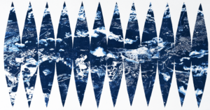 この作品では、約10年前から飛行機の窓越しに撮影してきた断片的な風景を一つの作品として扱っている。